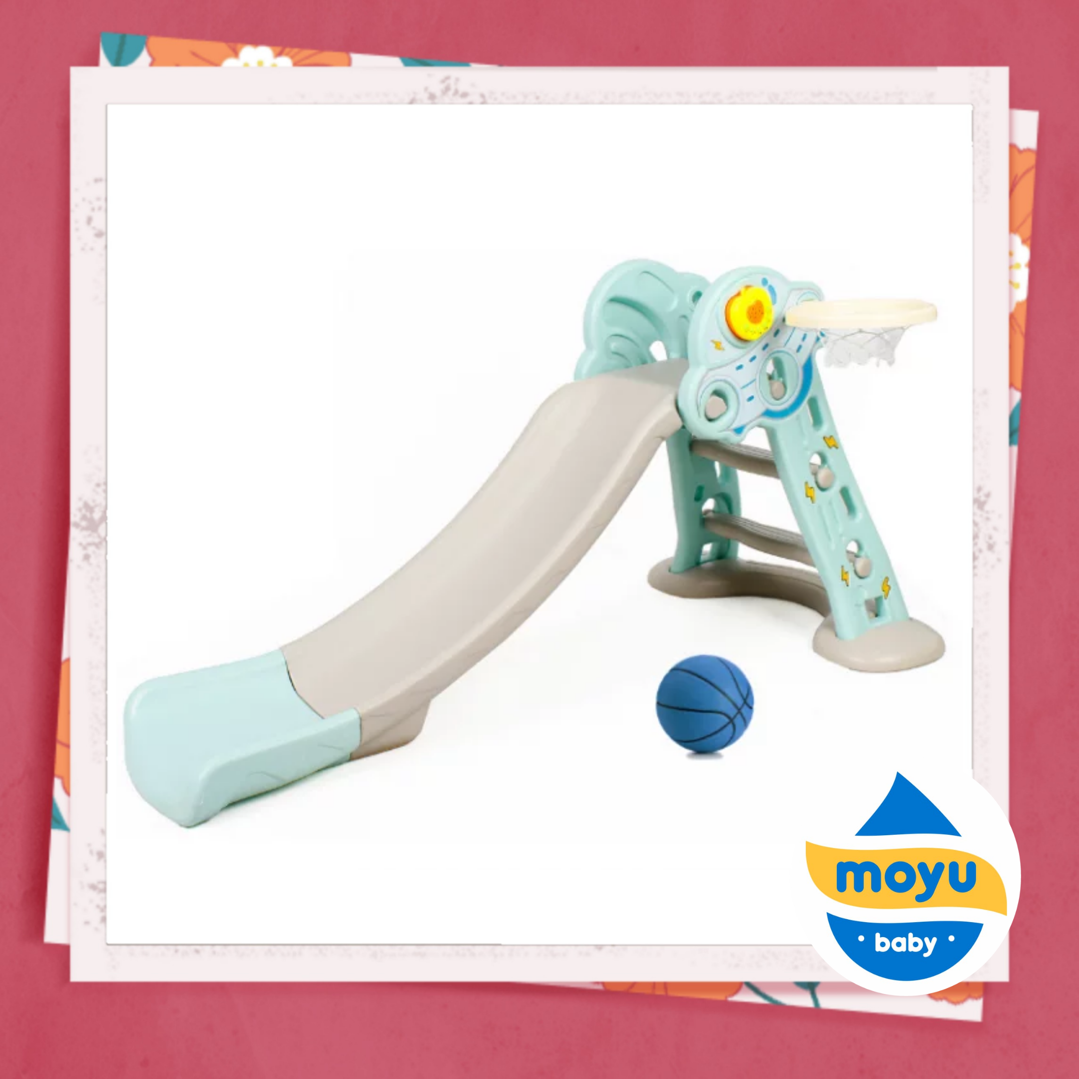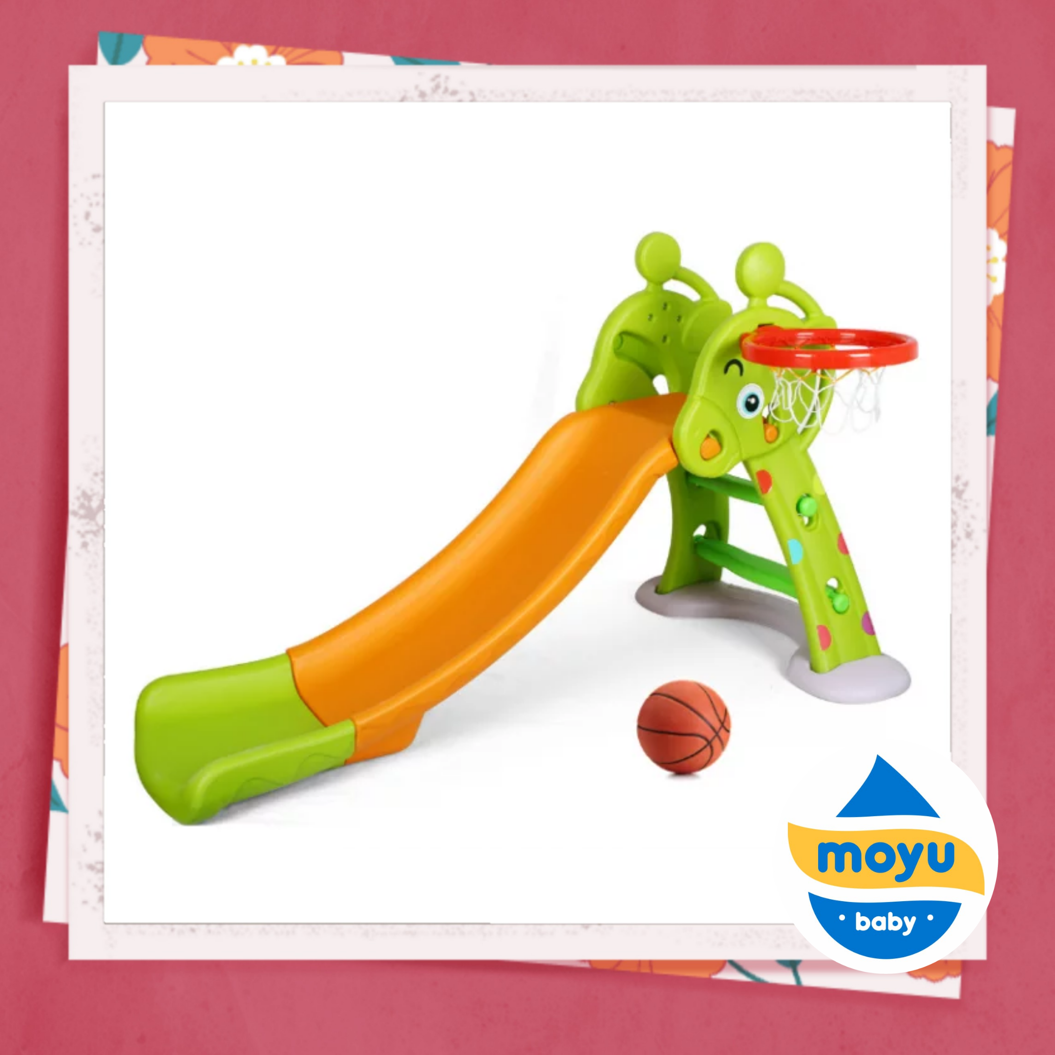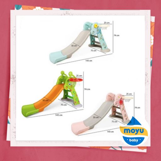 Moyu menyukai nya karena perosotan ini memiliki warna yang lucu dan menarik untuk dimainkan.