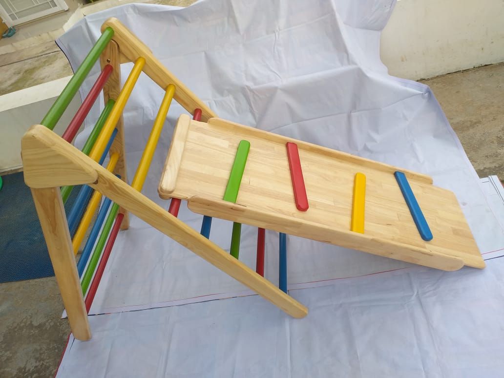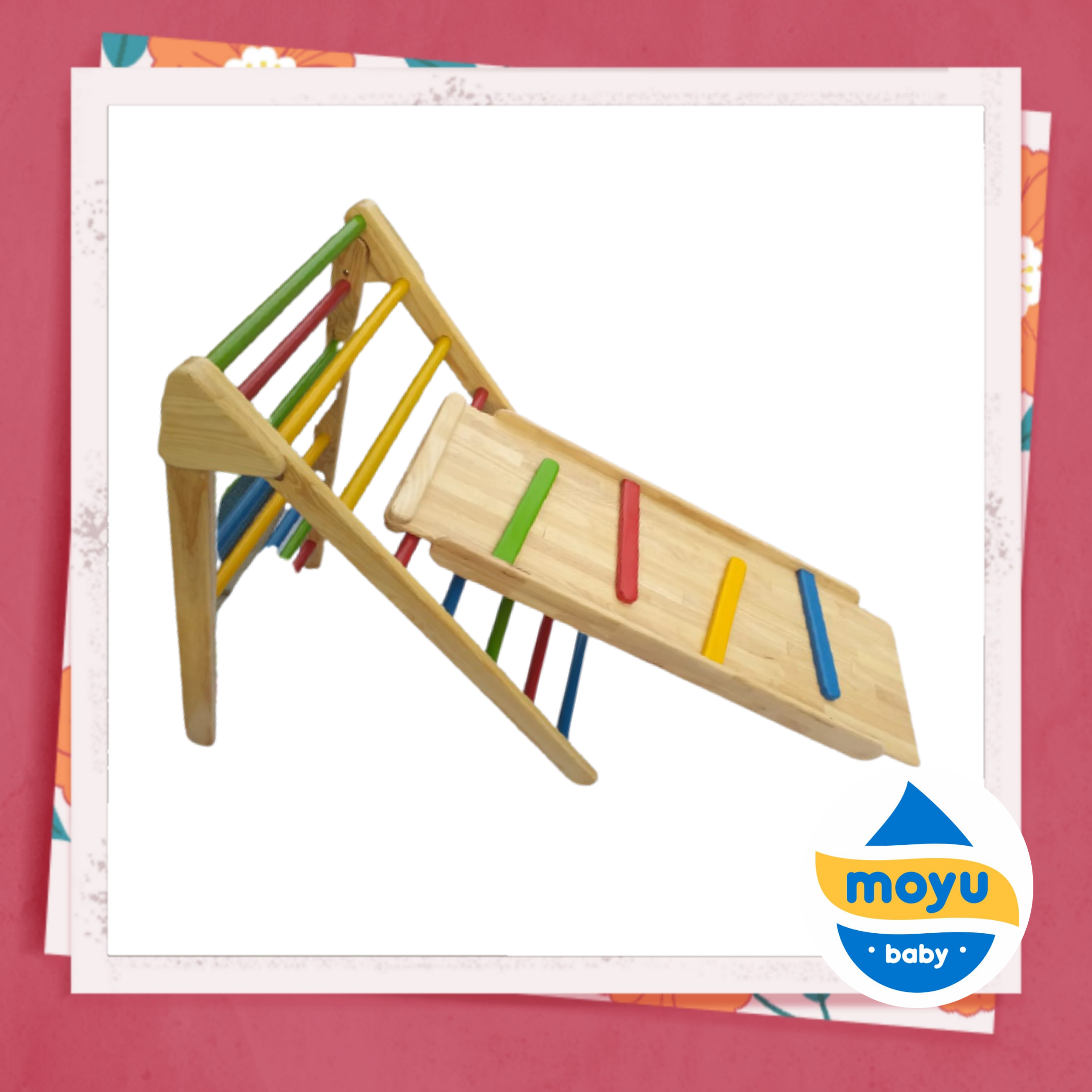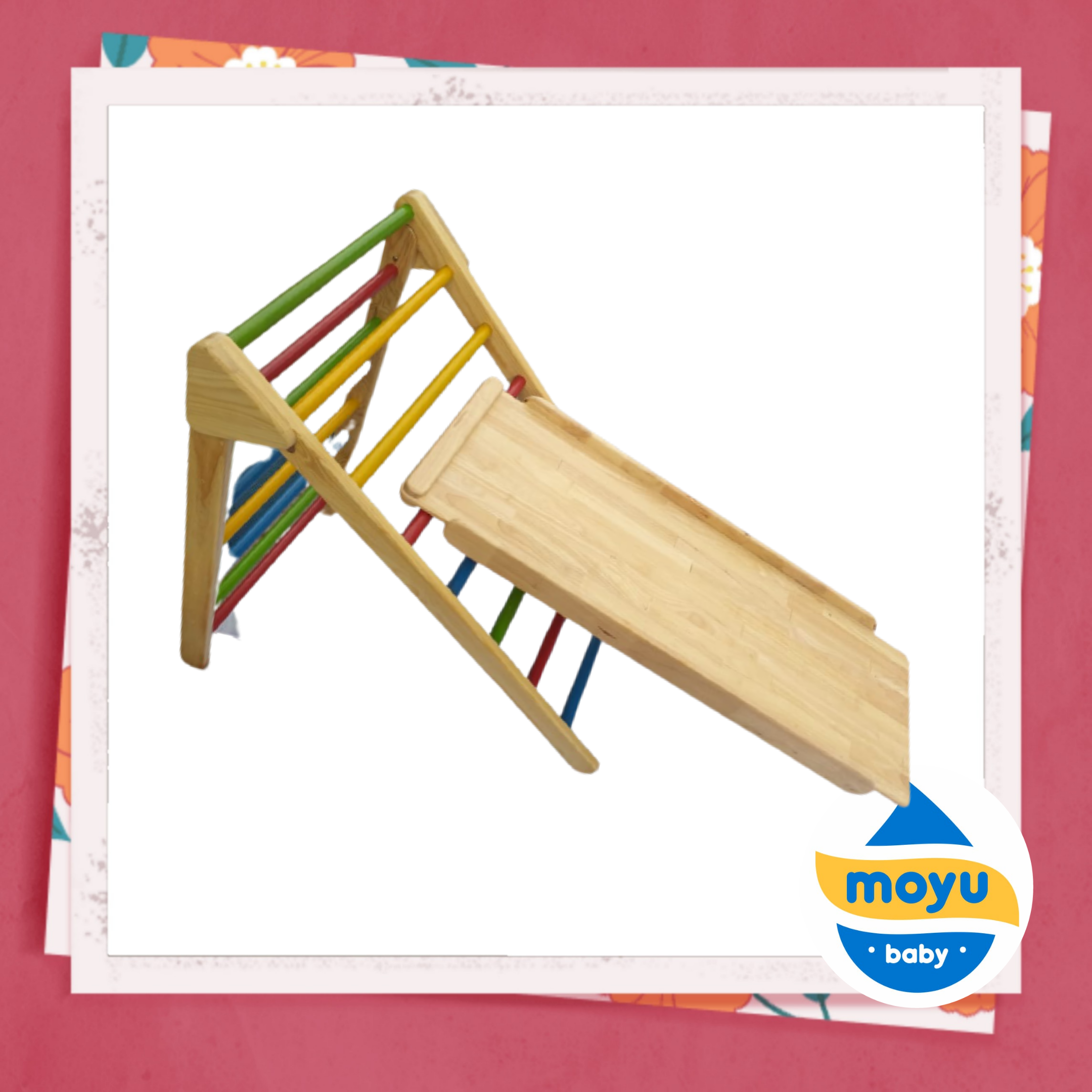 Memanjat menaiki tangga pikler triangle ini memberikan rasa kebebasan anak untuk mencoba, melatih cara mereka memanjat dan melatih keseimbangan dan kesabaran anak anda.