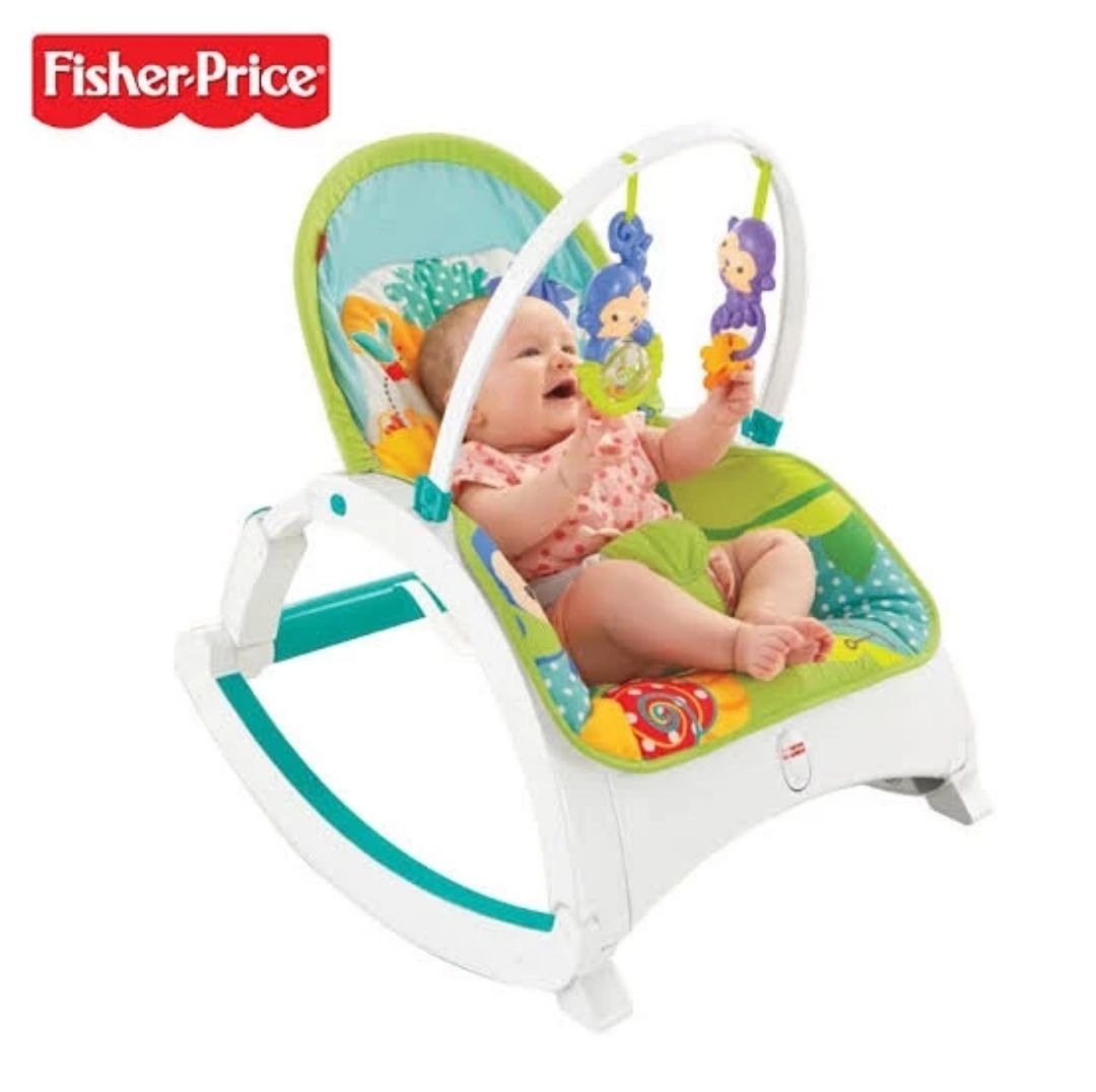 The Fisher-Price Rainforest Friends Newborn to Toddler Portable Rocker grows with your baby. Starting as a low profile newborn seat, the rocker converts into an infant seat with a removable toy bar. From there, the rocker can transition into a toddler rocker and be used until your child is 10 kg.
